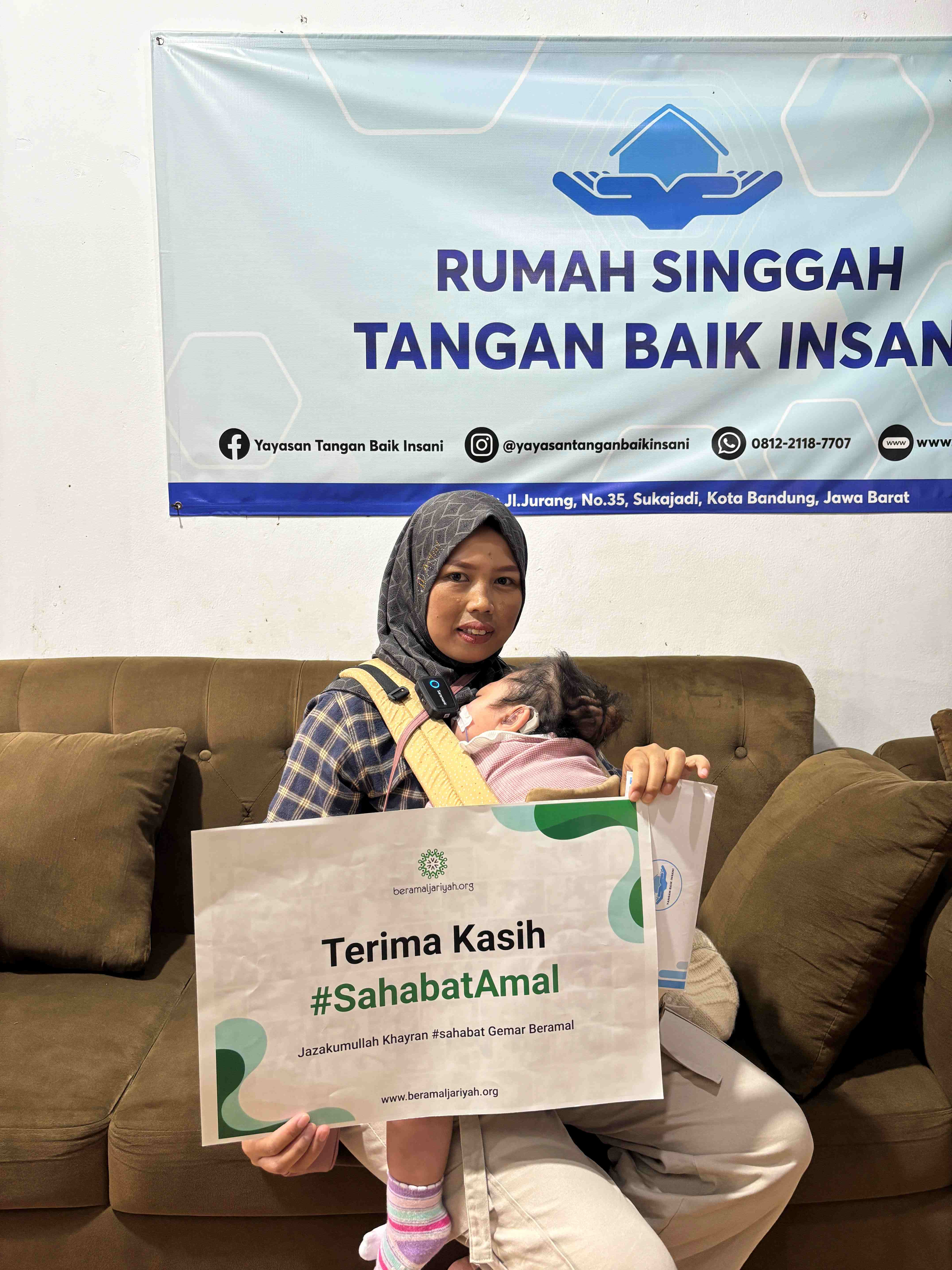 Izin menyampaikan kabar bahwa donasi yang telah diberikan oleh Sahabat Amal telah kami sampaikan oleh relawan Yayasan Tangan Baik Insani kepada Dik Intan dan orang tua di Rumah Singgah Tangan Baik Insani Kota Bandung, pada hari Kamis tanggal 17 April 2025. Sejumlah donasi yang terkumpul sebanyak Rp3.096.000 dari total 105 donatur sampai bulan April 2025 Alhamdulillah kami telah menyalurkannya dalam bentuk santunan tunai sejumlah Rp975.857. Rencana penggunaan donasi untuk memenuhi kebutuhan operasional pengobatan Dik Intan serta pemenuhan kebutuhan sehari-hari Dik Intan. Saat ini, Dik Intan masih terus menjalani serangkaian pengobatan diantaranya terapi motorik, sensorik dan berbagai terapi lainnya.